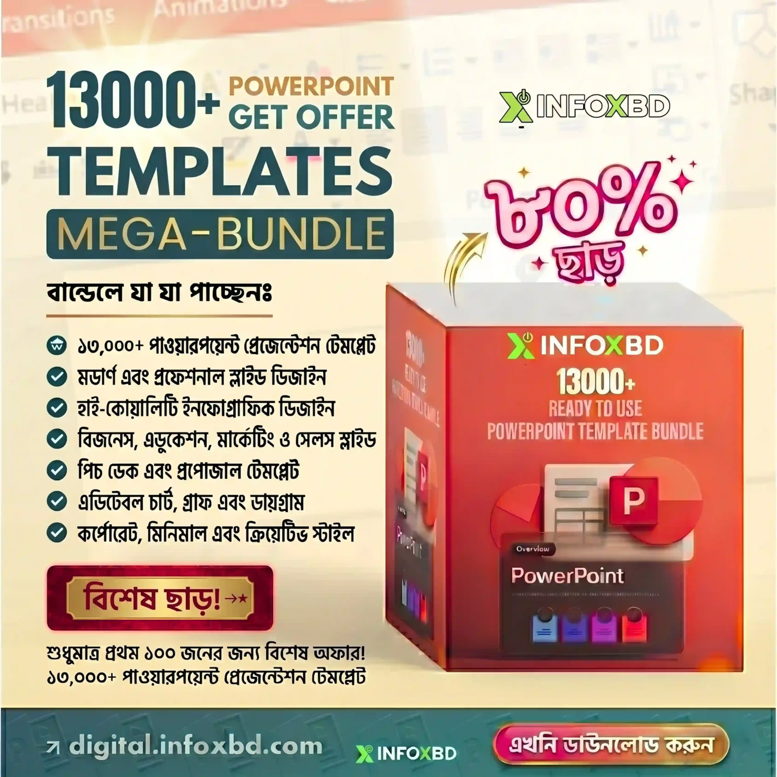 এই 13,000+ Ready-to-Use PowerPoint Templates Mega Bundle দিয়ে আপনি মাত্র কয়েক মিনিটেই বানাতে পারবেন professional level presentation — কোনো design skill ছাড়াই!